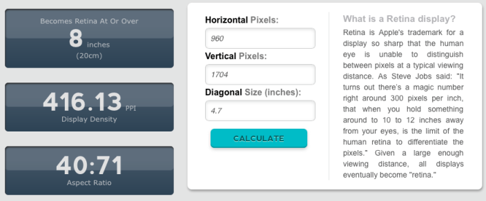 Theo những tin đồn mới đây, Apple đang thử nghiệm iPhone 6 màn hình 4,7 inch với độ phân giải lên tới 1704 x 960 pixel và mật độ điểm ảnh 416 ppi. Với việc tăng độ phân giải màn hình cho iPhone thế hệ mới, Táo Khuyết đã cho thấy rằng họ cũng không thể đi ngược xu thế.