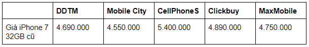 Bảng so sánh giá iPhone 7 32GB cũ: