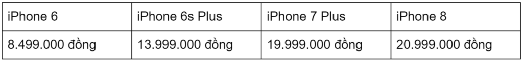 Thật vậy, trào lưu mua iPhone cũ gần đây đang bùng nổ và phát triển mạnh mẽ. Và lý do đơn giản nhất mà bất cứ ai khi đi mua iPhone cũ đều là vì chúng quá rẻ so với máy mới. Và còn tuyệt vời hơn nữa khi ở thời điểm hiện tại, những sản phẩm iPhone cũ đang được giảm giá rất mạnh. Đây thực sự là thời điểm lý tưởng để bạn có thể sở hữu cho mình một sản phẩm đến từ hãng “táo cắn dở”. Nhưng trước hết hãy cùng tham khảo bảng giá iPhone cũ và iPhone mới ngay dưới đây và bạn sẽ hiểu rõ vấn đề hơn.