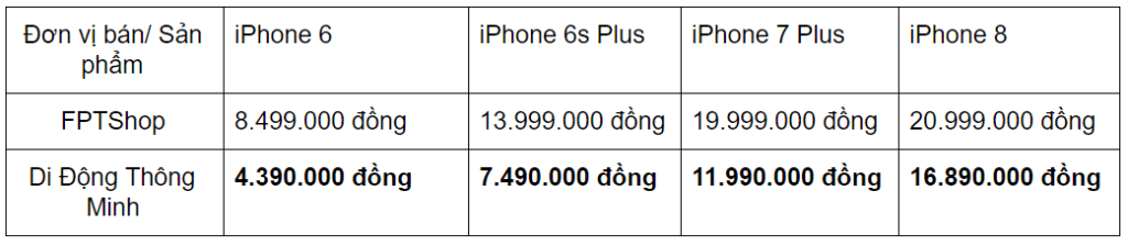 So sánh giá iPhone cũ tại Di Động Thông Minh với iPhone mới tại FPTShop