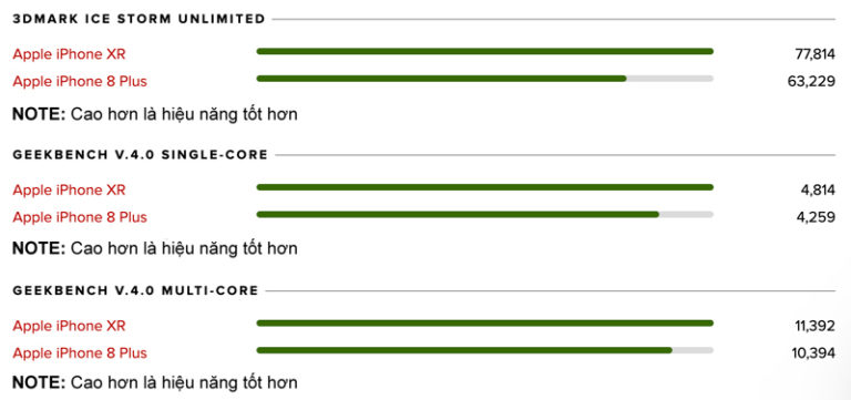 Do ra mắt muộn hơn iPhone 8 Plus tới 1 năm nên dĩ nhiên XR sẽ có cấu hình mạnh mẽ hơn. iPhone XR sở hữu con chip Apple A12 – đây hiện tại vẫn đang là chip xử lý tốt nhất trên điện thoại, cho tất cả trải nghiệm làm việc, chơi game đều cực kỳ nhanh chóng và mượt mà.
