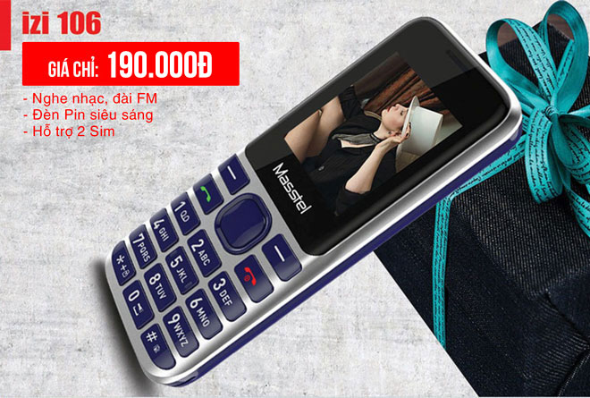 >> Điện thọai phổ thông phím bấm nghe nhạc, 2 sim, đèn Pin Masstel IZI 106 chính hãng giá chỉ: 190.000vnđ
