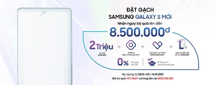 - Tặng thêm 3.000.000đ khi đổi máy cũ lấy Samsung Galaxy S 2021 mới. Bảng giá thu mua lại máy cũ tại đây.