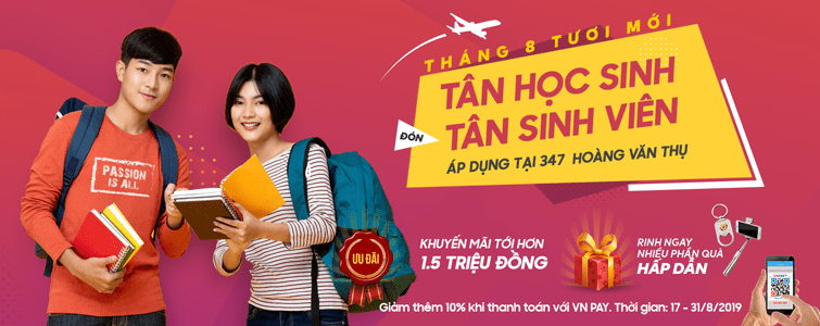 Chi nhánh 347 Hoàng Văn Thụ, Phường 02, Quận Tân Bình được mở rộng từ chi nhánh cũ 325 Hoàng Văn Thụ để được phục vụ khách hàng yêu công nghệ khu vực Quận Tân Bình, rất nhiều chương trình khuyến mãi hấp dẫn đã diễn ra nhằm tri ân những tình cảm của khách hàng nơi đây. Nhân dịp chào đón năm học mới cùng các bạn học sinh, sinh viên, tháng 8 này xin trân trọng gửi tới chương trình “CHÀO TÂN HỌC SINH – SINH VIÊN, KHUYẾN MÃI LÊN TỚI HƠN 1,5 TRIỆU ĐỒNG”.