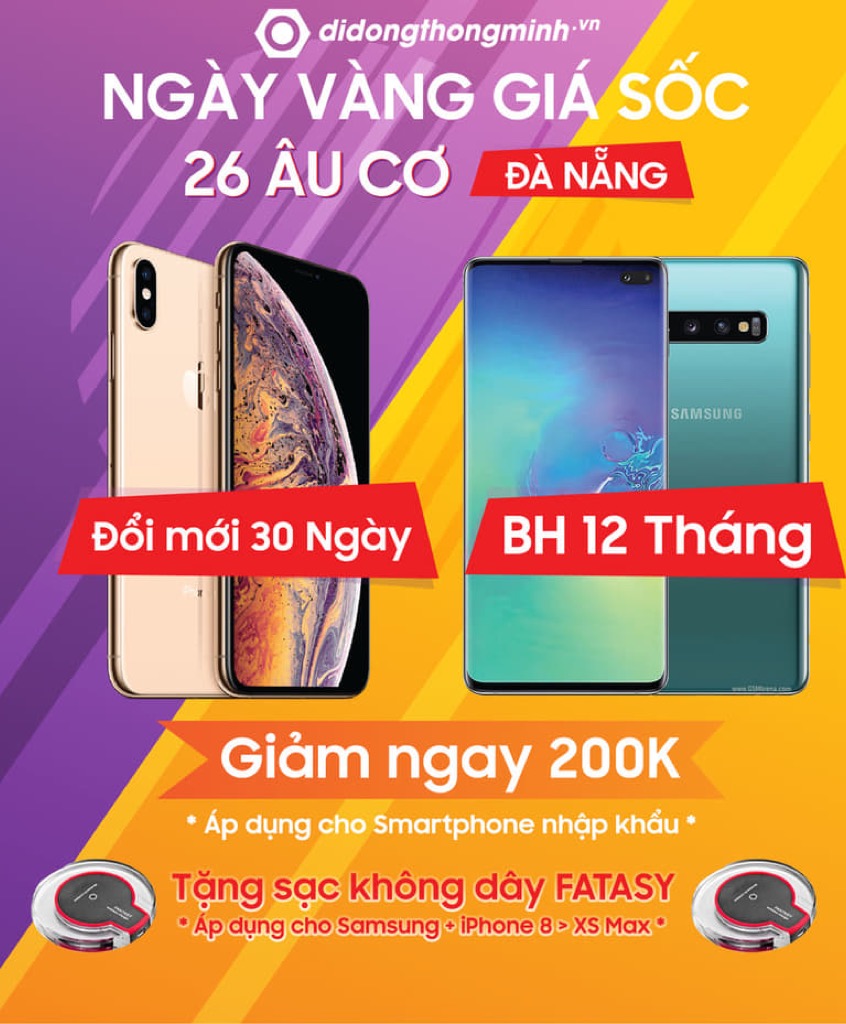 - Tặng sạc không dây FATASY cho các sản phẩm Samsung và iPhone (từ iPhone 8 đến XS Max) nhập khẩu.