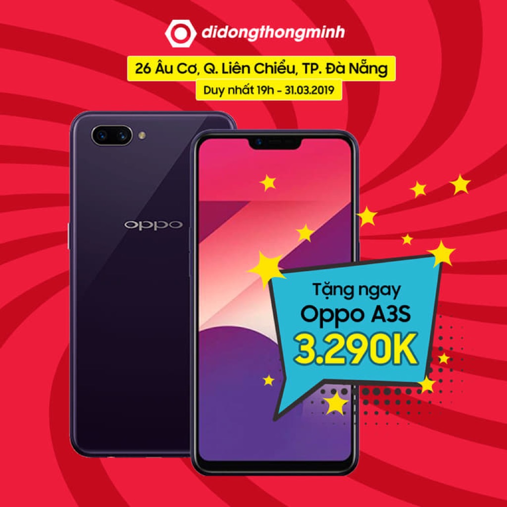 Vào 19h-20h ngày 31/03/2019, Di Động Thông Minh sẽ tiến hành chương trình quay thưởng trước showroom 26 Âu Cơ, Quận Liên Chiểu, Tp Đà Nẵng để trao tặng chiếc điện thoại Oppo A3S Chính hãng mới 100% nguyên Seal trị giá 3.290.000vnđ cùng các viên pin dự phòng 7.200mAh cho các khách hàng may mắn nhất