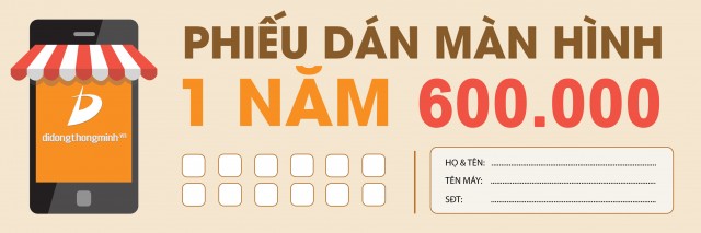 Để chào mừng năm mới 2015 cũng như tri ân toàn bộ khách hàng đã yêu mến, tin tưởng và ủng hộ Di Động Thông Minh trong suốt thời gian qua, đồng thời mong muốn mang lại cho khách hàng những lợi ích thật sự thiết thực và có ý nghĩa nhất, Di Động Thông Minh tổ chức chương trình ưu đãi đặc biệt, khuyến mãi hấp dẫn: “Phiếu dán màn hình 1 năm trị giá 600.000” chỉ với 60.000đ dành riêng cho khách hàng sử dụng dịch vụ tại hệ thống Didongthongminh.vn.