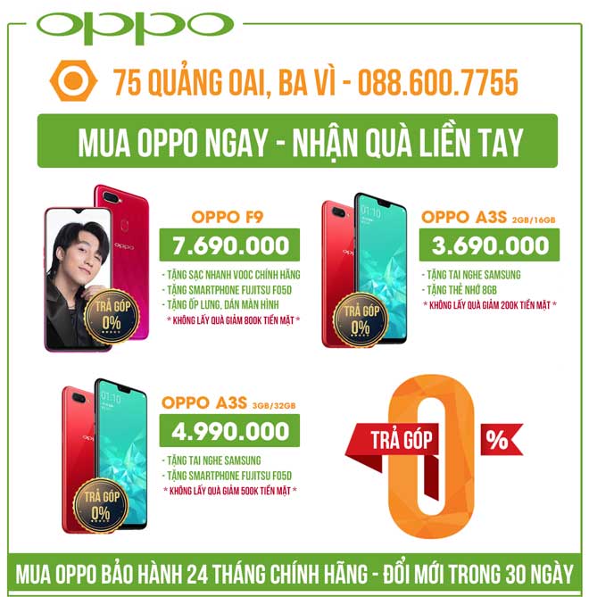 - Quà tặng cực lớn dành cho Oppo A3S, Oppo F9, giảm giá tiền mặt