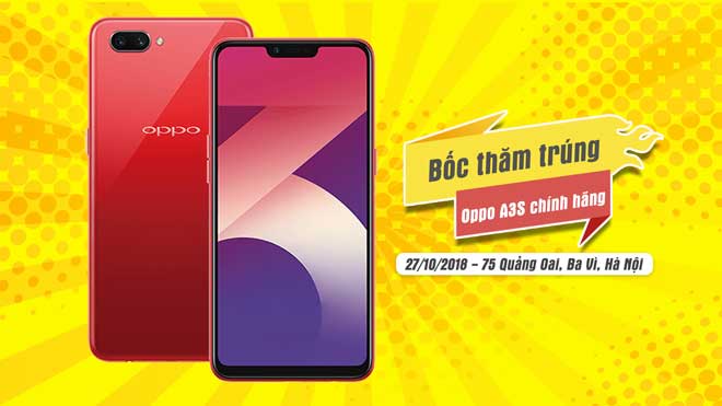- Bốc thăm trúng thưởng Oppo A3S chính hãng (lúc 19h30, ngày 27/10/2018)