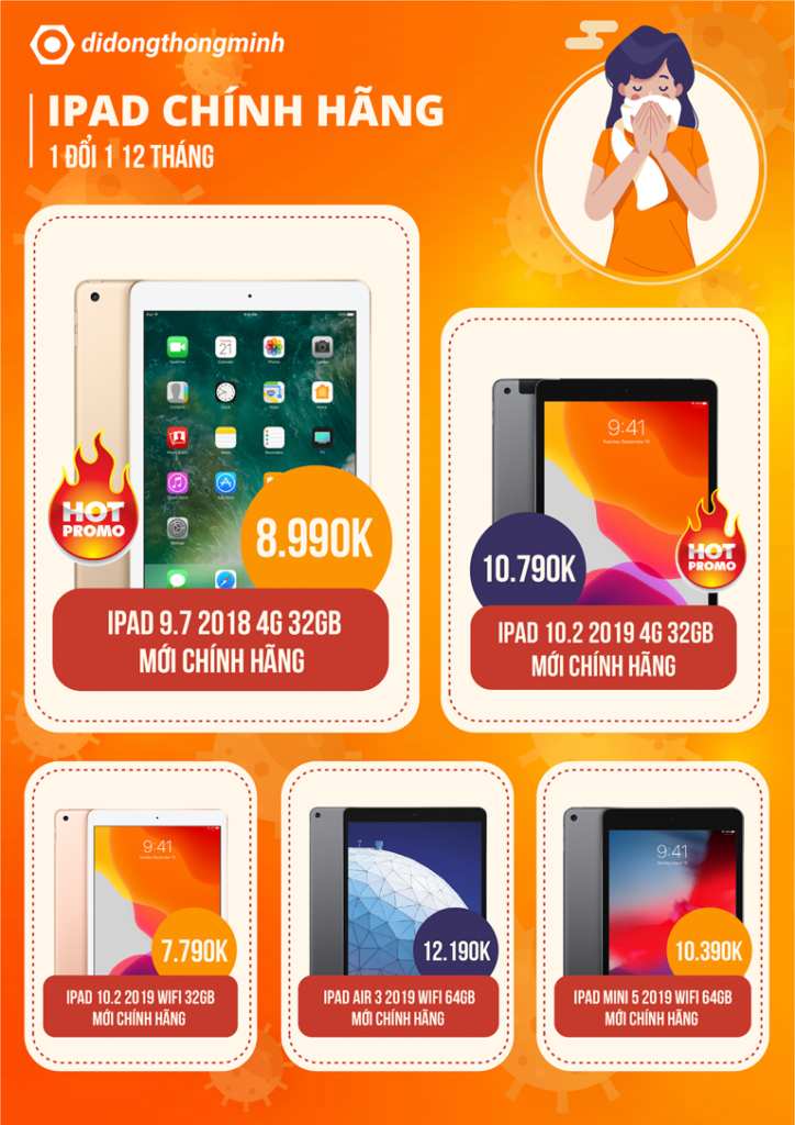 Khách hàng mua sắm các sản phẩm điện thoại, máy tính bảng theo danh sách bên dưới tại hệ thống Di Động Thông Minh trên toàn quốc sẽ được ưu đãi ngay 400.000đ bao gồm: 01 chai 500ml nước rửa tay khô chính hãng trị giá 150.000đ cùng ưu đãi giảm giá khác tới 250.000đ. Cụ thể như sau: