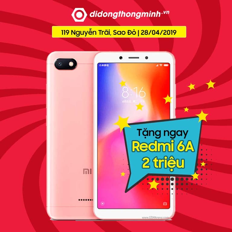 Tất cả khách hàng thăm quan trải nghiệm hay mua hàng trong buổi sáng ngày 28/04/2019 tại Showroom 32 Thái Học 2, Sao Đỏ, Chí Linh sẽ nhận được lá phiếu bốc thăm. Ban tổ chức sẽ tiến hành quay số may mắn để tặng chiếc điện thoại Xiaomi Redmi 6A chính hãng DGW mới 100% nguyên Seal trị giá 2.000.000vnđ.