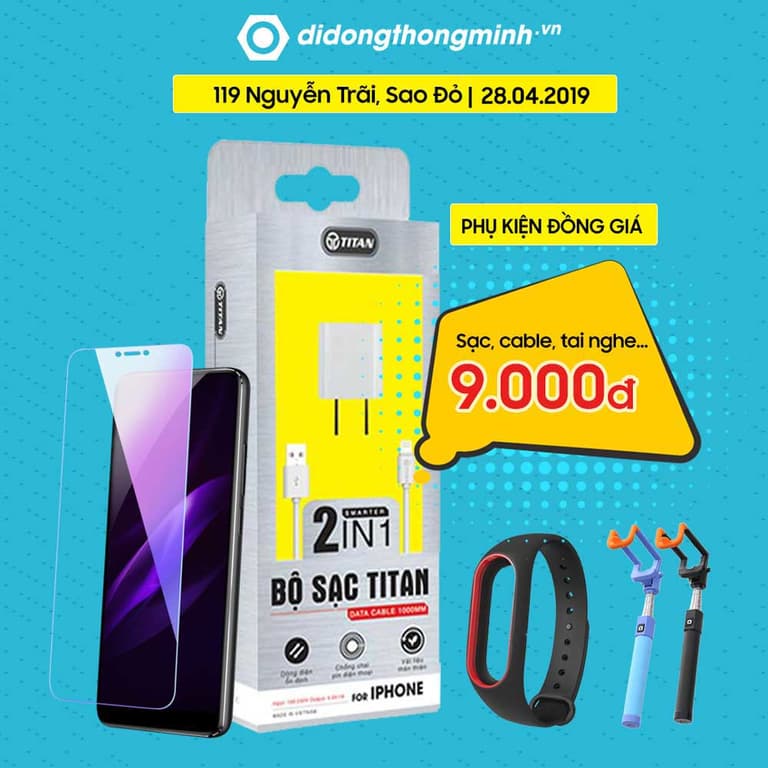 Trong ngày khuyến mại, Di Động Thông Minh 32 Thái Học 2, Sao Đỏ, tp Chí Linh sẽ có chương trình bán phụ kiện đồng giá chỉ 9.000vnđ cho rất nhiều sản phẩm như Sạc, Cable, Tai Nghe, Gậy Chụp Ảnh, Dán Cường Lực, Ốp Lưng…