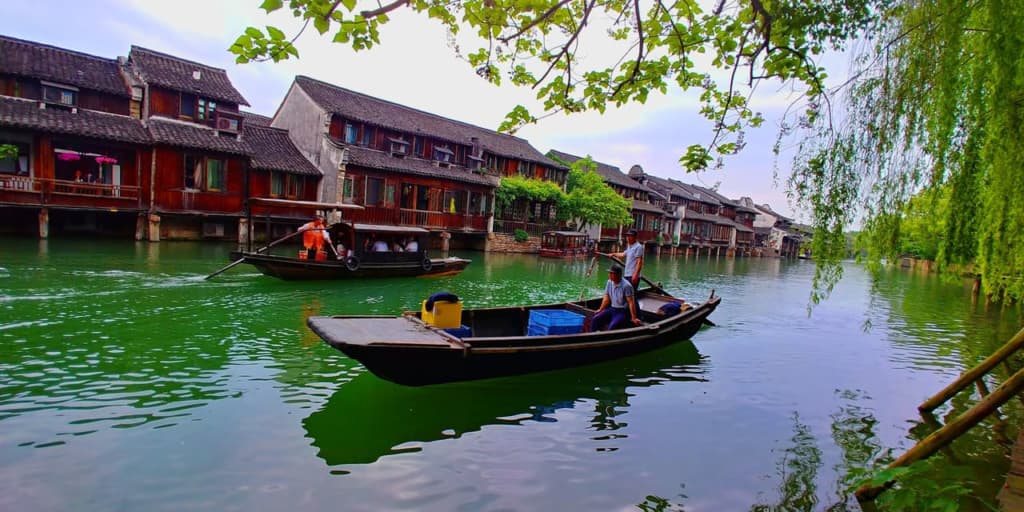 Cảm giác yên bình của những dòng sông vây quanh làng cổ, nhớ ngàn năm xưa trên bến dưới thuyền. Nhà ở trên sông gọi là thủy các, mặt chính của nhà quay ra dòng sông, để giúp chủ nhà có thể tận hưởng cái yên bình, phóng khoảng của thiên nhiên. Cũng là để thuận tiện di chuyển xuống thuyền ghe đi lại…