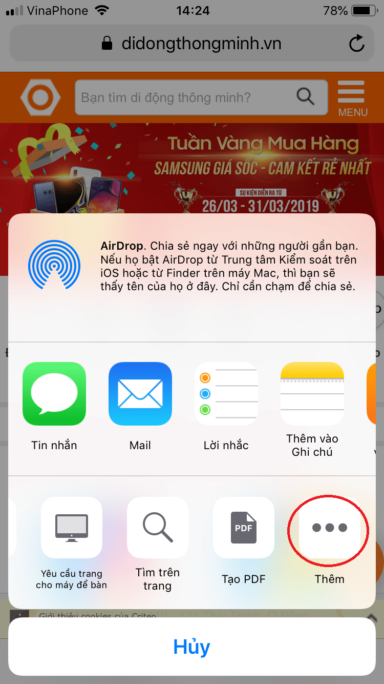 Bước 4: Kế tiếp các bạn kéo qua và chọn vào “thêm”.
