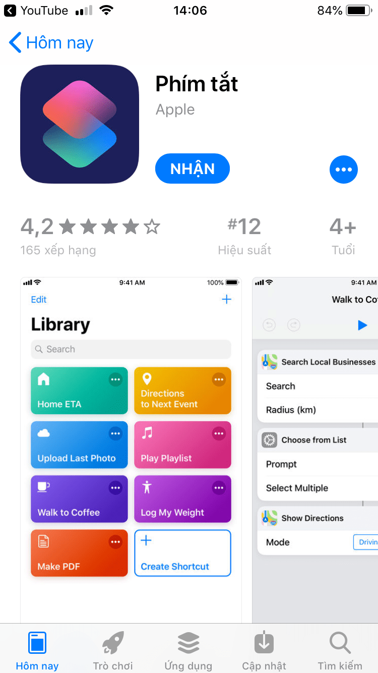 Bước 1: các bạn vào AppStore tải ứng dụng ” Phím Tắt “.