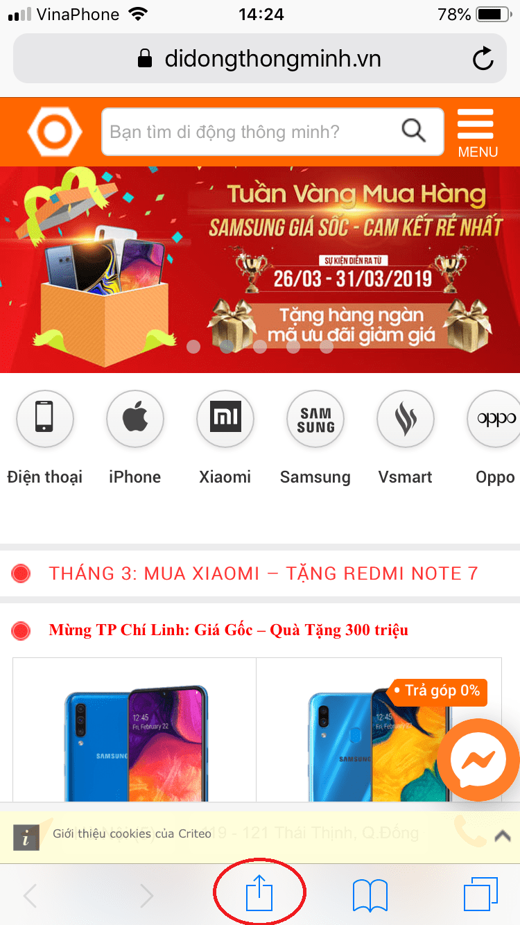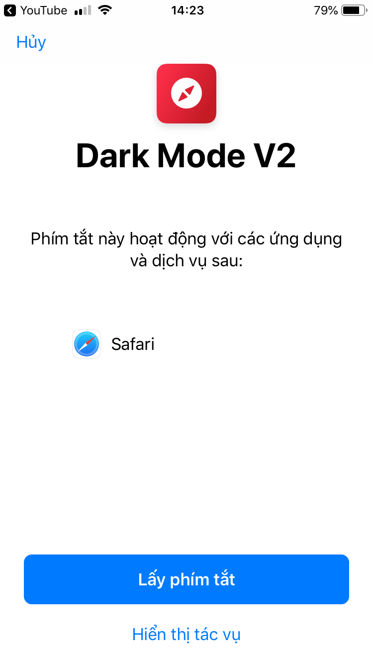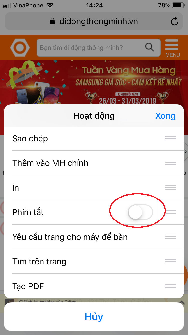 Bước 3: Bạn cứ kích hoạt lên, sau đó vào trình duyệt Safari, chọn giống như hình nhé.