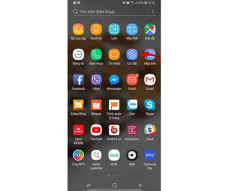 Truy cập vào ứng dụng Cài đặt ở bên trong khay ứng dụng (vuốt lên để mở khay ứng dụng).