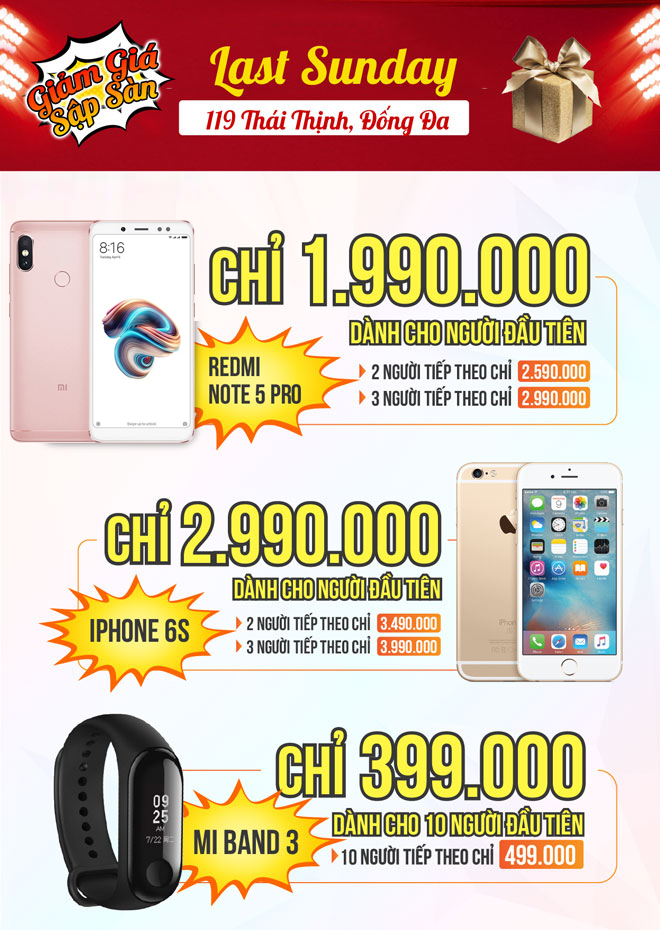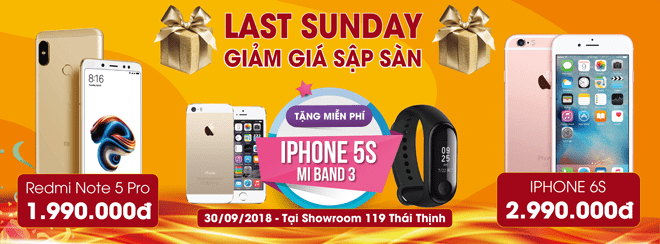 Last Sunday - Giảm Giá Sập Sàn: Tặng iP5S, Mi Band 3, iPhone 6S 2.990K, RMN5 Pro 1.990K tại 119 Thái Thịnh - Di Động Thông Minh