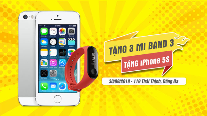 Duy nhất trong ngày 30/09/2018, tất cả khách mua hàng và khách tham quan tại Showroom 119 Thái Thịnh, Đống Đa, Hà Nội đều nhận được phiếu bốc thăm may mắn để có cơ hội trúng 3 chiếc Mi Band 3 (Mỗi vòng đeo tay trị gía 699K) và 1 chiếc iPhone 5S Lock 99% (Fix lỗi dùng như quốc tế không cần sim ghép) trị giá 1.990K.