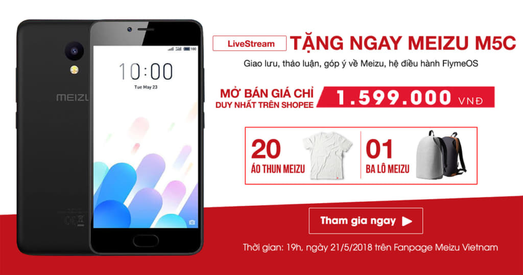 Rõ ràng Meizu M5C là một trong những sản phẩm rất tuyệt vời và đáng để sở hữu trong tầm giá dưới 2 triệu. Để cung cấp thêm thông tin cho bạn đọc về đợt Flash Sale ngày 22/5, Meizu sẽ tổ chức một buổi Livestream tư vấn, hỏi đáp về các sản phẩm của hãng nói chung và Meizu M5C nói riêng cũng như để giao lưu, ghi nhận những góp ý của người dùng để hãng trở nên tốt hơn trong thời gian tới. Đặc biệt tại buổi Livestream, các bạn sẽ có cơ hội nhận một chiếc Meizu M5C hoàn toàn miễn phí và hàng loạt những phần quà khác như áo thun Meizu, Balo Meizu.