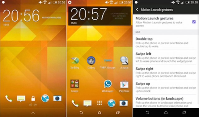 Trên HTC Sence 6, các thao tác cử chỉ mở màn hình được HTC gọi là Motion Launch gestures, không chỉ đơn giản là nhấp đúp mở màn hình mà chúng ta còn có thể làm nhiều hơn thế. Như trong video thì Motion Launch gestures sẽ bao gồm các cử chỉ như: