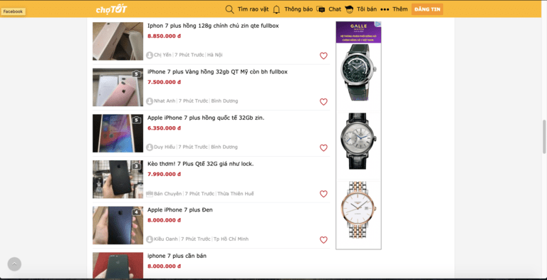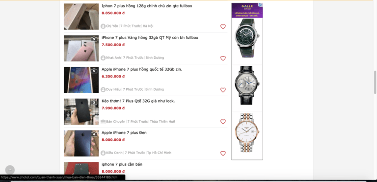 Bạn chỉ cần lên ”chợ tốt” và tìm kiếm iPhone 7 Plus. Danh sách sẽ hiện ra rất nhiều cho bạn lựa chọn với mức giá rất rẻ