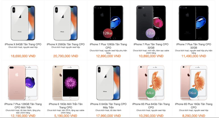 Ngoài ra các bạn cũng có thể tham khảo qua các dòng CPO với hình thức và máy chưa kích hoạt :
