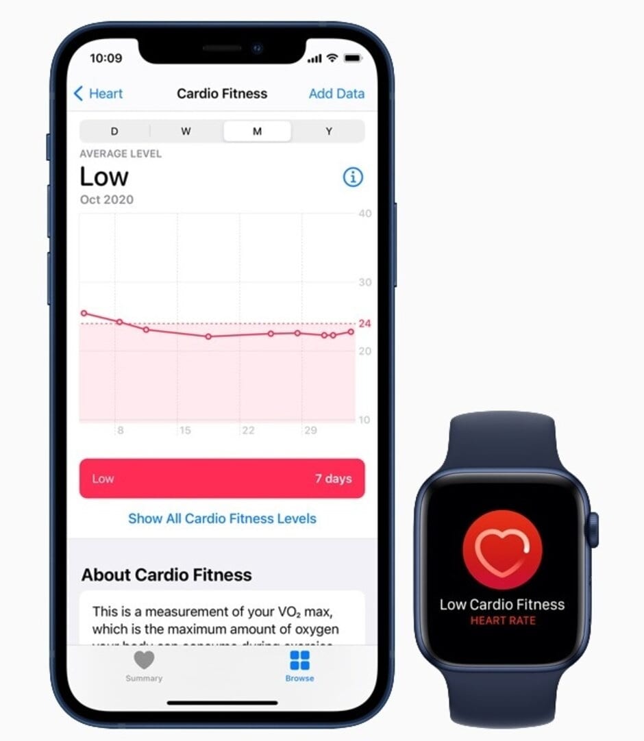 Chỉ số này thấp có thể là dấu hiệu của bệnh tim mạch sắp tới và cảnh báo từ Apple Watch có thể là một cứu cánh khác. VO2 Max là lượng oxy tối đa mà một người có thể sử dụng khi tập thể dục. Con số này có thể được cải thiện bằng cách tập luyện thể chất.