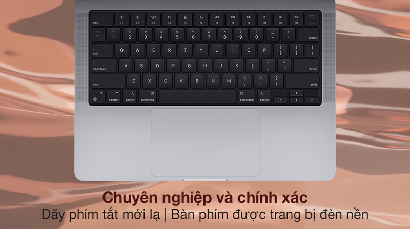 MacBook Pro 14 inch M1 Pro đươc trang bị vi xử lý Apple M1 Pro 10 nhân sản xuất dựa trên tiến trfnh 5nm tiên tiến giúp tích hợp được nhiều bóng bán dẫn hơn, có tất cả khoảng 33 tỷ bóng bán dẫn đem lại hiệu xuất xử lý với tốc độ băng thông đạt 200GB/s memory bandwidth nhanh hơn thế hệ M1 những 70% đem lại khả năng xử lý tất cả các tác vụ từ văn phòng cơ bản đến chuyên nghiệp một cách dễ dàng nhất.