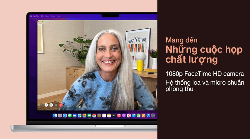 Ngoài ra, Macbook Pro 14 inch M1 Pro MKGT3SA/A cũng hỗ trợ camerra Facetime với độ phân phải Full HD 1080P giúp thu lại những hình ảnh chất lượng, đáp ứng mọi nhu cầu gọi điện Facetime, hội họp qua Zoom, Skype đảm bảo chất lượng hình ảnh sắc nét nhất. Tiêu chuẩn micro thu âm giống như tại phòng thu với trang bị 3 micro đem đến khả năng thu âm hoàn hảo, giảm được những tạp âm, tiếng ồn không cần thiết.