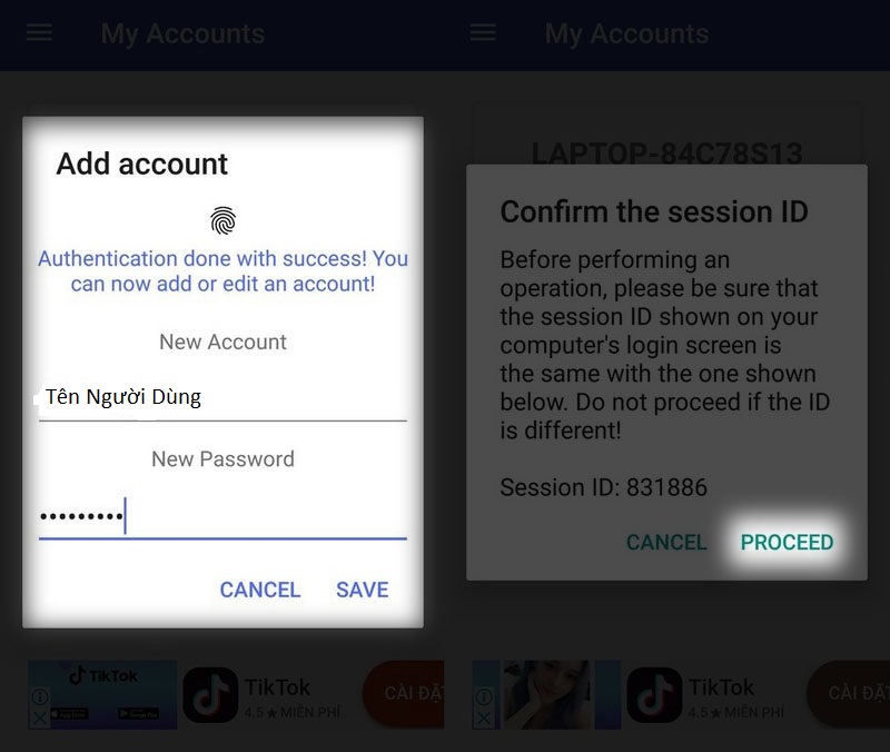 Nhấn vào PROCEED như hình. Để ý là Session ID trùng với trên Laptop như bước 2 nhé!