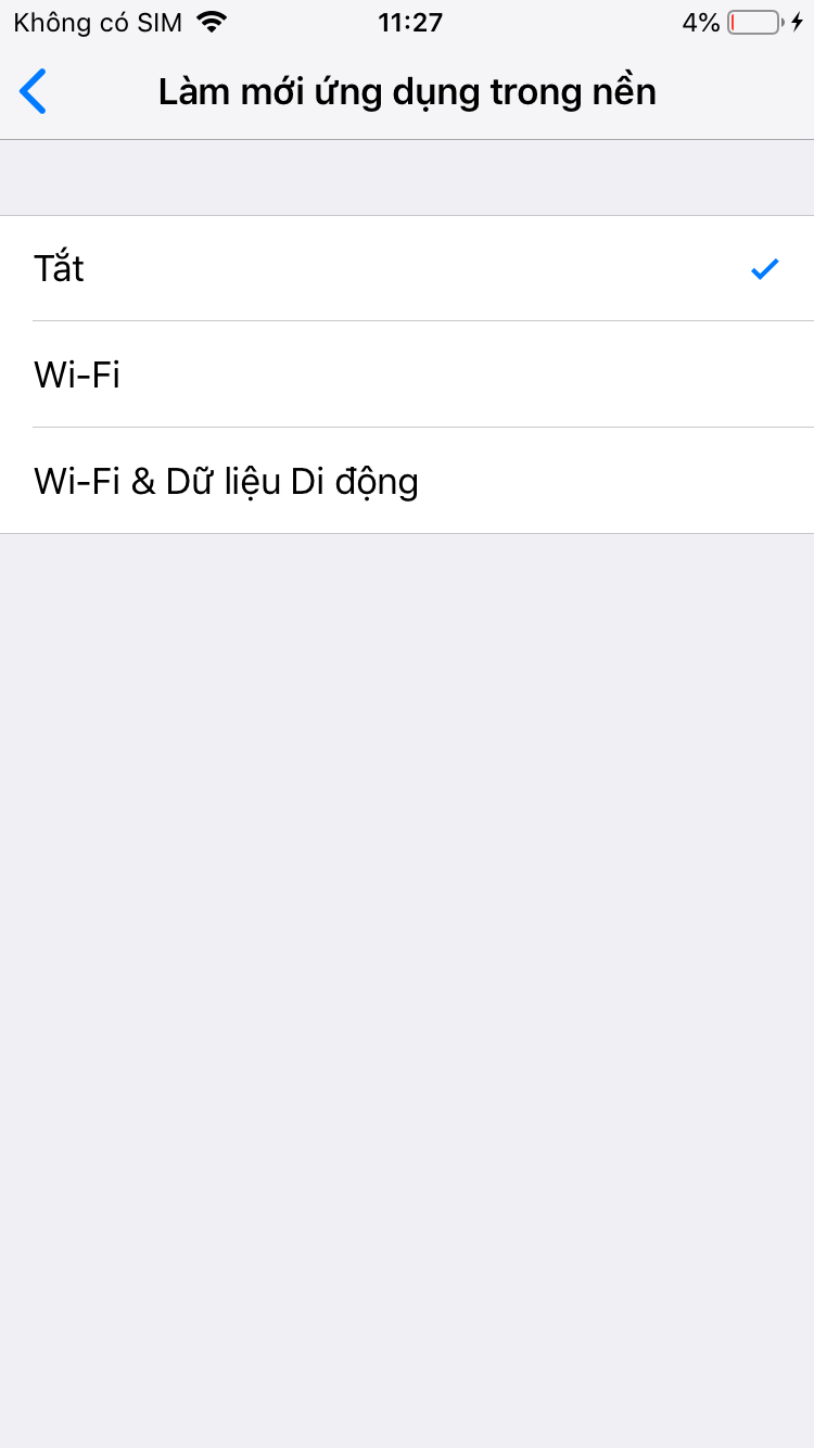 Làm mới ứng dụng trong nền là tính năng mà khi bạn không sử dụng điện thoại nhưng có kết nối mạng thì các ứng dụng sẽ được làm mới cập nhật hoặc nhận thông báo một cách bình thường tắt tính năng này là giúp tăng tuổi thọ pin của bạn một cách đáng kể :