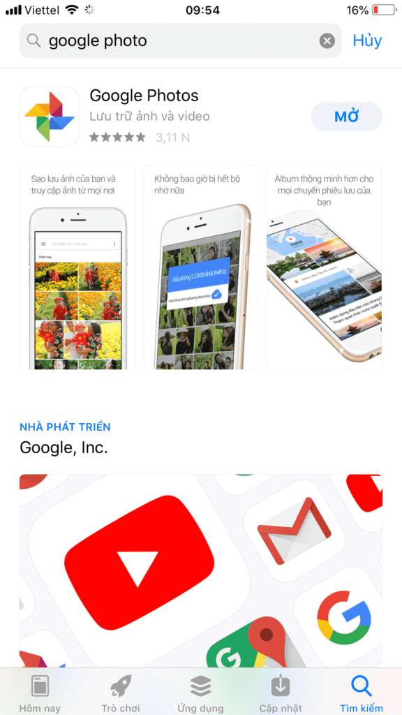 Bước 1: Cài app Google Photo từ App Store và đăng nhập tài khoản Google của bạn vào ứng dụng vừa tải.