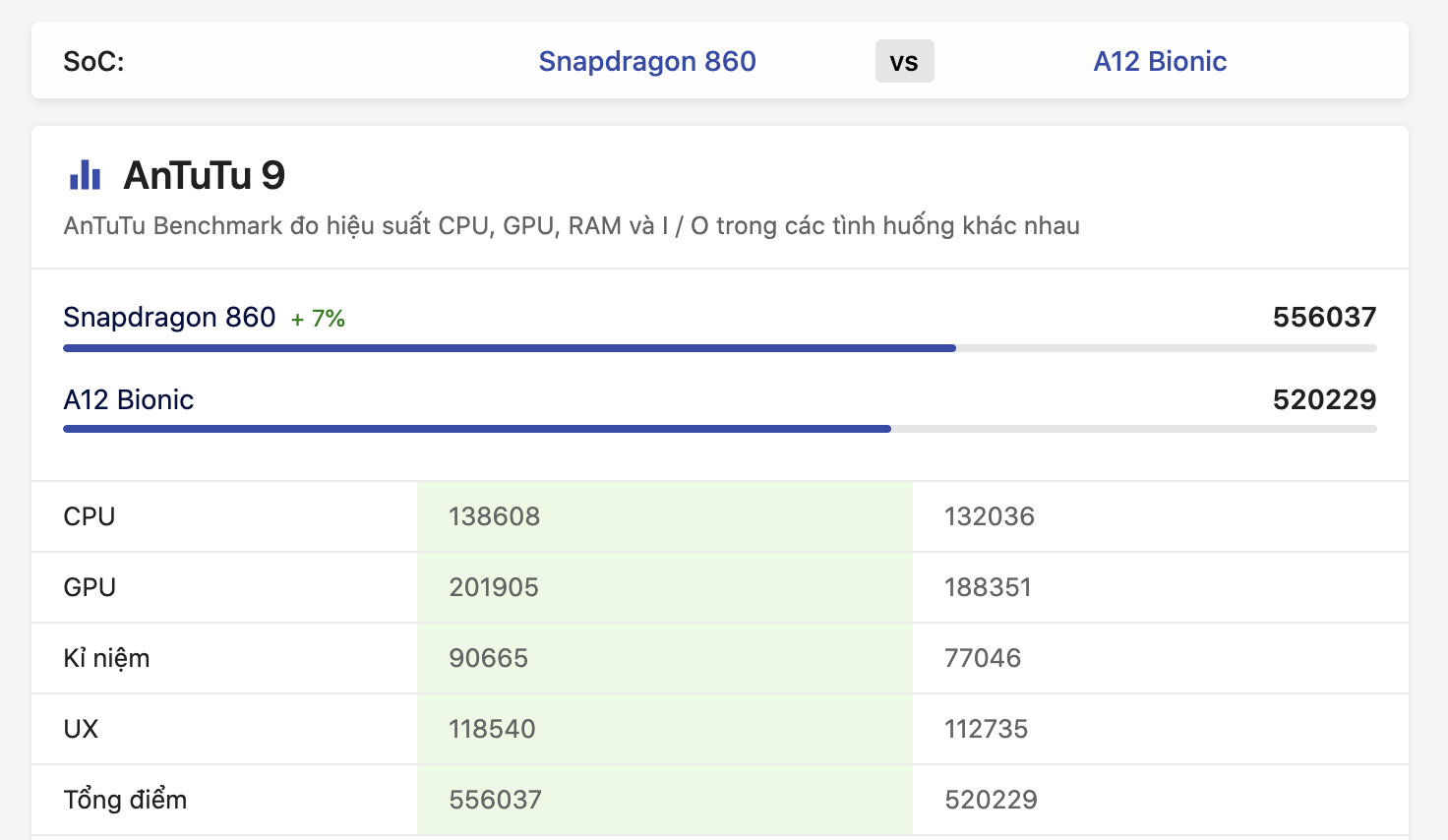 Đối thủ đáng gườm của Mi Pad 5 trong phân khúc là iPad Gen 8 nhưng phần lớn các bài đánh giá hiệu năng đều cho thấy Snapdragon 860 chiếm ưu thế hơn so với A12 Bionic, cả về tốc độ xử lý và khả năng render đồ họa.