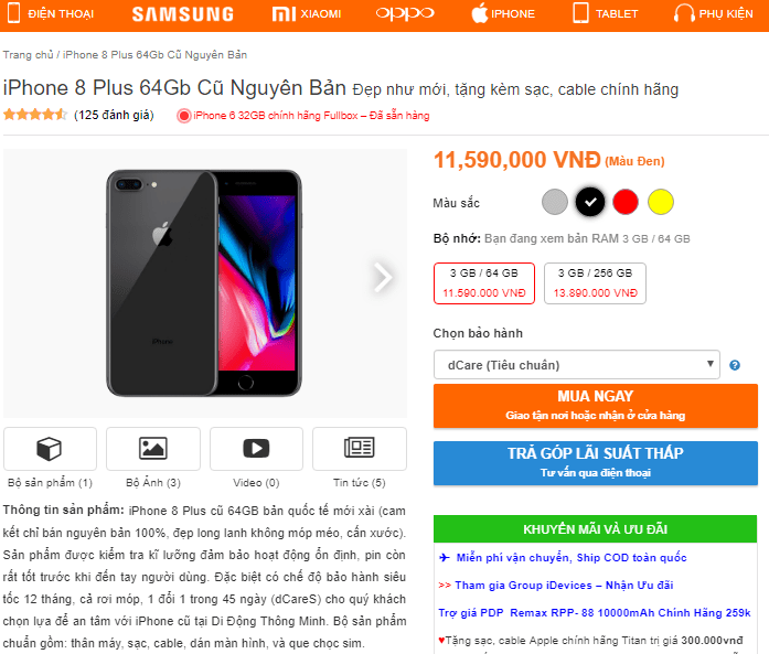Nhìn lại cụ thể hơn về giá bán, iPhone 8 Plus tại Di Động Thông Minh phiên bản quốc tế đang có mức giá 11,6 triệu đồng, cũng đã có giảm nhưng không đáng kể và mình nhận thấy 8 Plus chính là chiếc điện thoại có biến động giá thấp nhất so với những sản phẩm iPhone khác. Tiếp theo iPhone X cũ đang có giá cao nhất là 15,4 triệu đồng còn iPhone XR mặc dù là sản phẩm mới nhất vì vừa ra mắt cuối năm ngoái nhưng giá của nó thấp hơn iPhone X và cao hơn 8 Plus, giá khoảng 15 triệu cho sản phẩm mới trần, đã kích hoạt, những phiên bản iPhone XR cũ sẽ rẻ hơn nữa.
