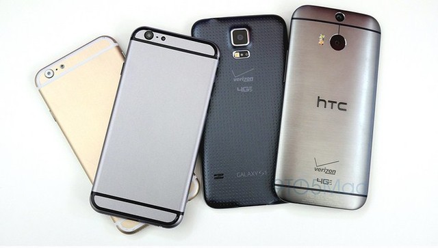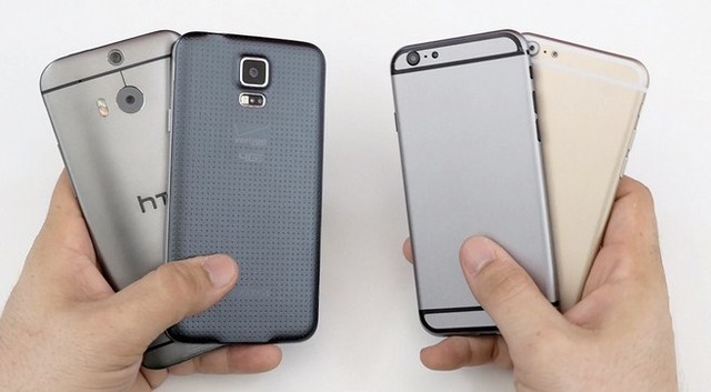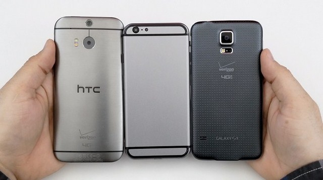 Mô hình iPhone 6 so dáng cùng HTC One M8 và Galaxy S5 - Di Động Thông Minh