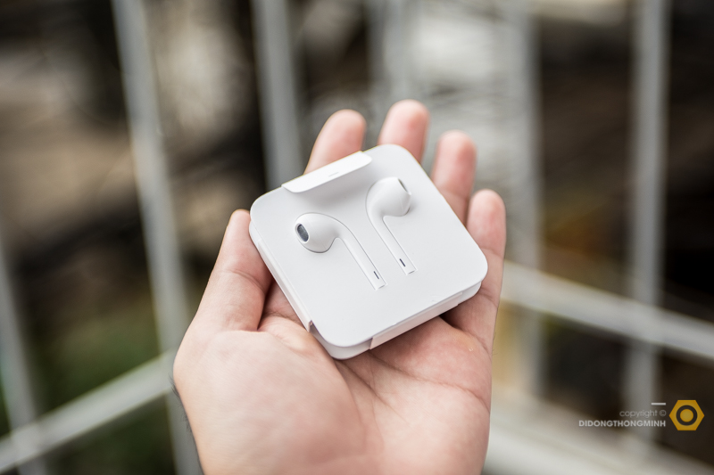 Tai nghe dây cổng lightning đặc trưng dòng iPhone 7/7 plus cùng adapter 3.5mm phía sau.
