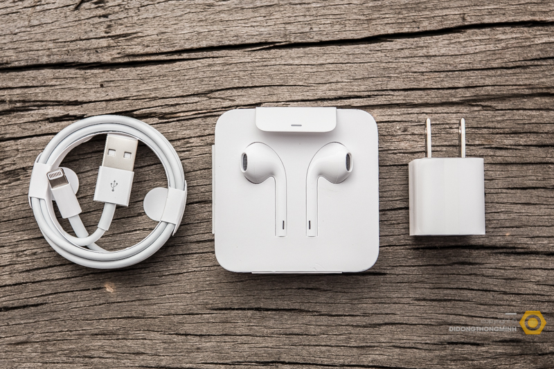 Mở hộp sản phẩm iPhone 7 Plus CPO chúng ta có bộ phụ kiện đi kèm đầy đủ bao gồm sách hướng dẫn sử dụng, que chọc sim, sạc cáp lightning, tai nghe dây Earpods và một adapter 3,5mm.