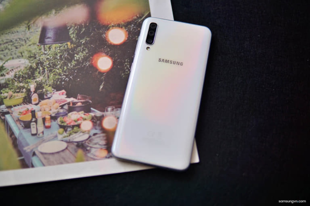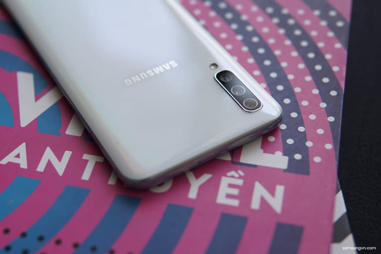 Samsung A50 sở hữu 3 camera sau với 1 camera chính 25MP, 1 camera góc siêu rộng 8MP và 1 camera phụ 5MP để chụp ảnh xoá phông