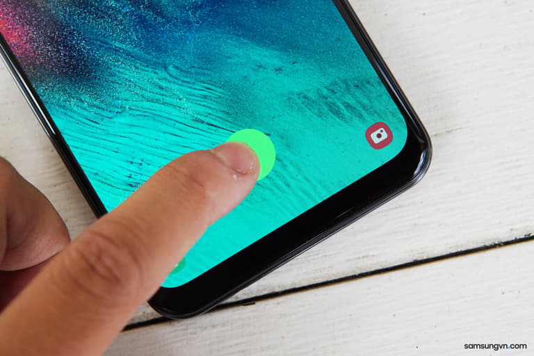 Về bảo mật, Galaxy A50 hỗ trợ Cảm biến Vân Tay trong màn hình duy nhất trong phân khúc giá này cùng với khả năng diện khuôn mặt 2D