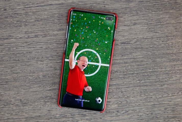 Chip NFC bên trong ốp giúp Samsung Galaxy S10+ tự động kích hoạt giao diện mang hình ảnh vị HLV nổi tiếng.