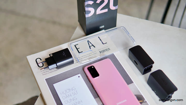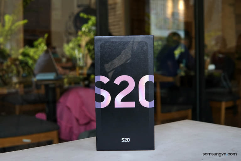 Và đây là hộp của Galaxy S20, với dòng chữ S20 màu hồng rất nổi bật! (Ảnh nguồn: samsungvn.com)