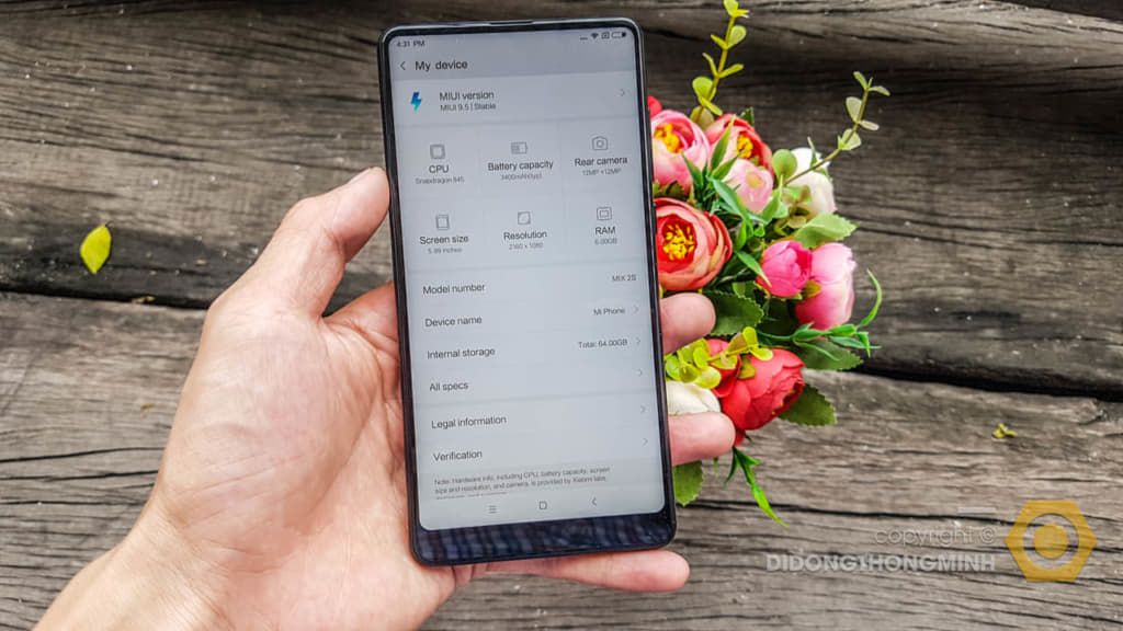 Về cấu hình, Xiaomi MI MIX 2S vẫn trang bị những thông số khủng nhất với Snapdragon 845, GPU Andreno 630 cùng 6GB RAM – 64GB ROM. Viên pin đi kèm 3.400 mAh, có hỗ trợ sạc nhanh Quick charge 3.0.