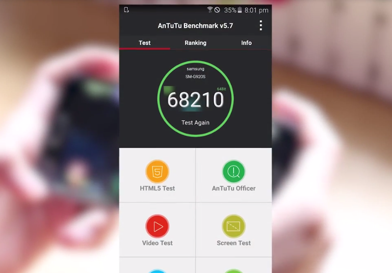 Cấu hình của máy đang đứng đầu tất cả những chiếc điện thoại Android khác với con chip Exynos 7420 64bit 2.1Ghz, 3GB RAM cùng GPU Mali-T760. Với những thông số đầu bảng này thì đương nhiên điểm số benchmark của máy cũng nằm ở top đầu của Antutu với số điểm hơn 60000. Thật sự khủng khiếp với một thân hình mỏng manh như thế này.