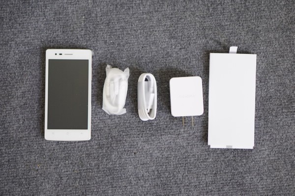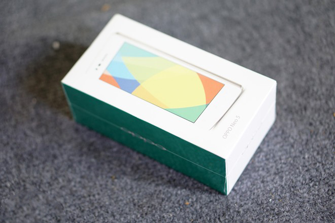 Trước khi đập hộp chiếc OPPO Neo 5 chính hãng này, bạn có thể thấy thiết kế bên ngoài hộp Neo 5 khá đơn giản khi mặt trước là ảnh của sản phẩm còn mặt sau là những thông số cơ bản của máy. Bên trong lớp vỏ màu mè, chúng ta có một chiếc hộp trắng đơn giản tinh tế với logo oppo màu xanh . Ngoài chiếc máy Neo 5, chúng ta sẽ có sách hướng dẫn cùng bộ phụ kiện cơ bản là sạc, cáp, tai nghe chính hãng OPPO.