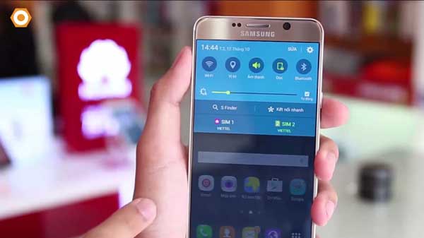 Như đã đề cập ở trên thì đây là một chiếc Note 5 N9200, những thông số hay thiết kế thì rất ít khác biệt so với bản Note 5 thường 1 SIM. Chính vì thế mà mình sẽ tập trung đi sâu vào phần đánh giá khả năng quản lý 2 SIM của máy. Khi lắp đủ cả 2 SIM, thì biểu tượng 2 cột sóng hiện lên trên màn hình. Ở đây sẽ có một cột sóng được nằm trong khung hình vuông, tức là SIM đó đang được ưu tiên để liên lạc hay dùng dữ liệu. Kéo thanh thông báo xuống sẽ có ngay phím tắt chọn từng SIM rất là tiện. Như vậy là ở chế độ mặc định, máy sẽ ưu tiên kết nối với SIM được chọn, SIM kia vẫn được giữ sóng để nhận cuộc gọi nếu cần nhưng chỉ dùng được 2G.