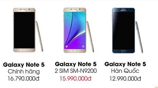 Giá của máy cũng rất là hấp dẫn. Tại DĐTM, một chiếc Note 5 2 SIM quốc tế mã N9200 đang có giá 15.990k, vẫn thấp hơn bản chính hãng đang có giá 16.790k và cao hơn 3tr đồng so với chiếc Note 5 thường. Có thể thấy là mức giá của máy phù hợp cho một sản phẩm cao cấp, cấu hinh mạnh, thiết kế đẹp nhưng lại có đến 2 SIM. Cách biệt 3tr so với phiên bản thường thoạt nghe thì có vẻ lớn nhưng nếu mà xét về độ tiện lợi khi không phải dùng 2 máy, những cái chi phí liên lạc hay truy cập dữ liệu rẻ hơn thì xét về lâu dài, đây lại là máy mang đến hiệu quả kinh tế rõ ràng.