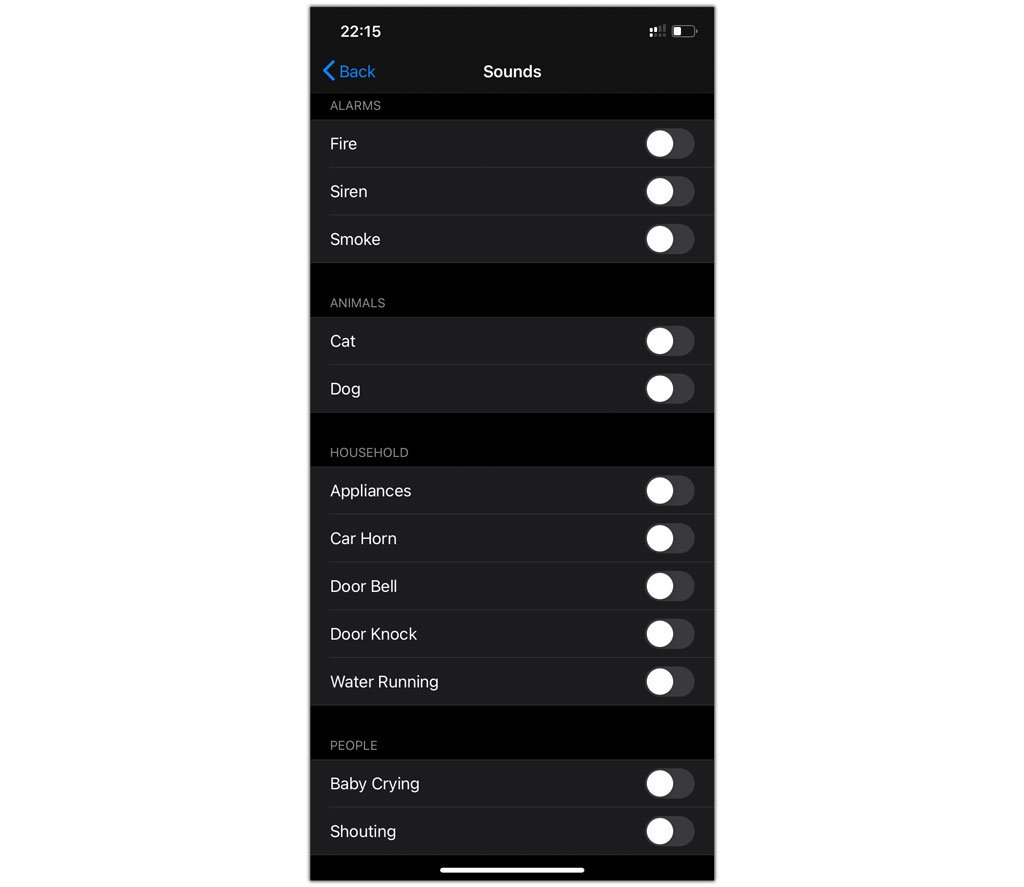Để kích hoạt tính năng này lên các bạn truy cập vào Settings, Accessibility, Sound Recognition. Bật công tắc On để kích hoạt xong vào phần Sounds, sẽ có 12 âm thanh khác nhau để máy nhận biết như lửa, khói, còi báo động, tiếng chó, mèo… Tính năng này sẽ rất hữu ích cho những người có vấn đề về thính giác.