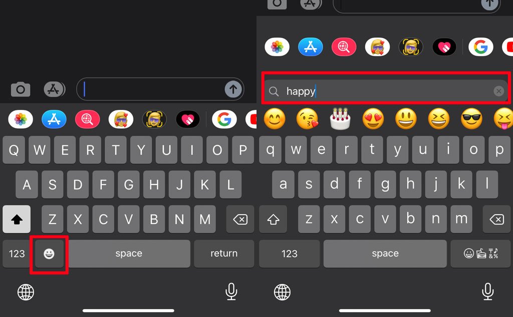 Trước kia muốn tìm kiếm một biểu tượng nào bạn chỉ có thể tự tìm thủ công nhưng hiện nay với iOS 14 bổ sung tính năng mới, chúng ta có thể tìm kiếm ngay trên thanh search khi bấm vào icon biểu tượng. Người dùng có thể search vui, buồn, hạnh phúc…máy sẽ tự động gợi ý ra các biểu tượng tương ứng.