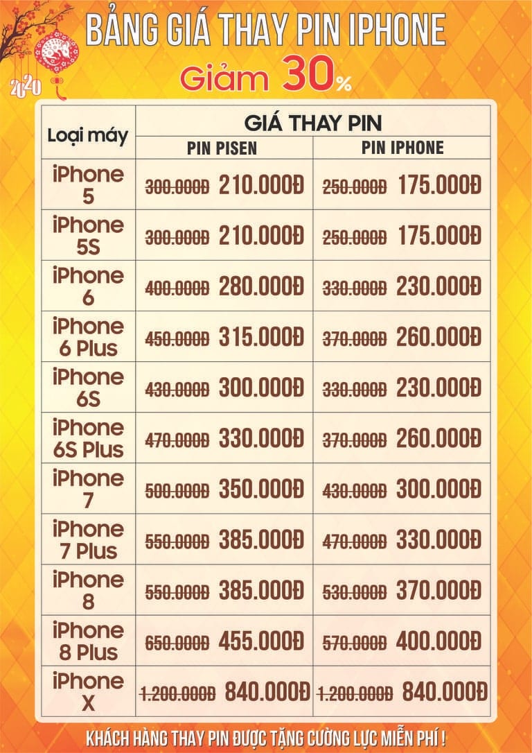 - BẢNG GIÁ THAY PIN IPHONE ƯU ĐÃI 30%